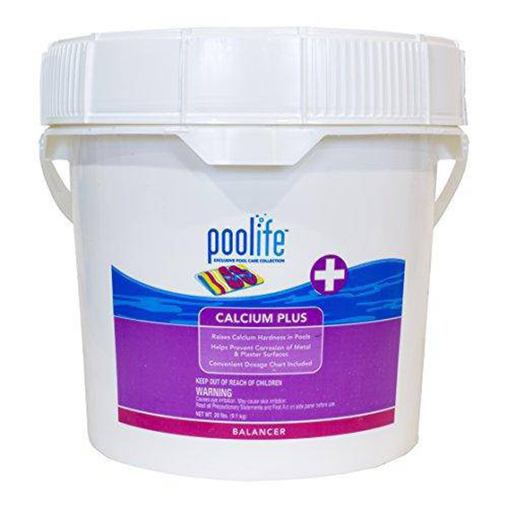 Details: poolife Calcium Plus raises the calcium hardness of swimming pool water. The ideal calcium hardness range is 200-500ppm. Maintaining calcium hardness below 200ppm may cause corrosion of metal and plaster surfaces.