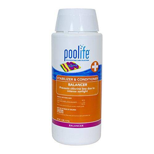 Details: poolife Stabilizer & Conditioner balancer raises the stabilizer (cyanuric acid) level of swimming pool water. The ideal stabilizer range is 20-50ppm. Proper stabilizer levels stop the loss of chlorine caused by sunlight.