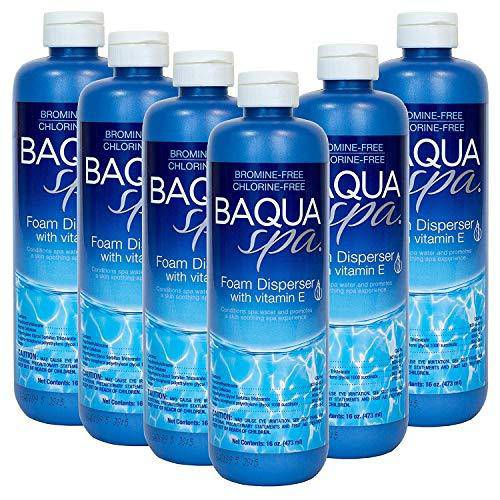 Details: BAQUA SPA Foam Disperser with Vitamin E (1 pt) helps to reduce the foaming in your BAQUA SPA treated hot tub. Specially treated with vitamin E to promote a skin-soothing spa experience with no foam.
