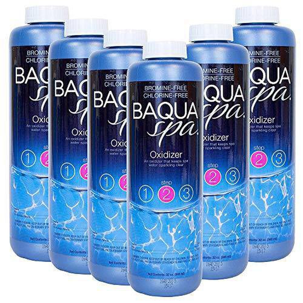 Details: BAQUA SPA Oxidizer (1 qt) is a liquid oxidizer designed to shock and clarify your spa. This hydrogen peroxide formula keeps your spa sparkling clear without the use of chlorine or bromine. This is step 2 of the BAQUA SPA system.