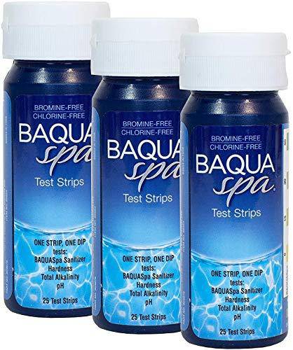 Details: BAQUA SPA Test Strips-4 way (25 count) are a quick and easy way to test your BAQUA SPA treat system. Each test strips tests for Sanitizer with Stain & Scale Control, Hardness, Total Alkalinity and pH.