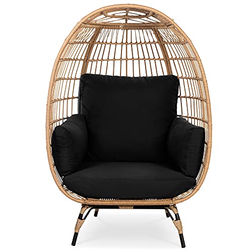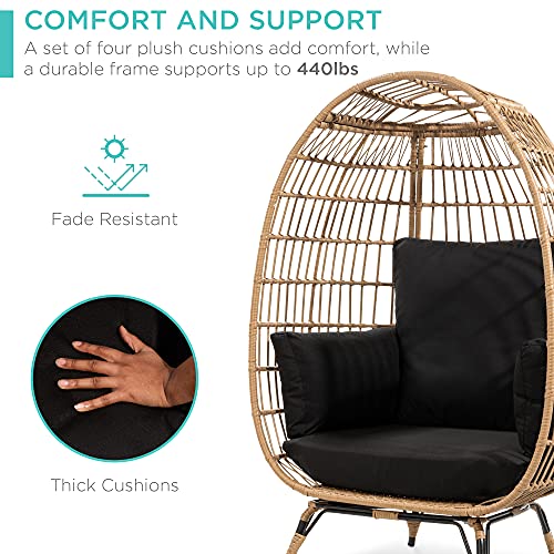 Best Choice Products Wicker Egg Chair, Oversized Indoor Outdoor Lounger for Patio, Backyard, Living Room w/ 4 Cushions, Steel Frame, 440lb Capacity - Black