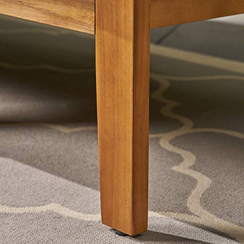 - Includes: one (1) right-side Armrest, one (1) left-side Armrest, one (1) armless piece, one (1) ottoman, one (1) Coffee table. Frame material: Acacia wood. Cushion material: water-resistant fabric. Fabric composition: 100% polyester