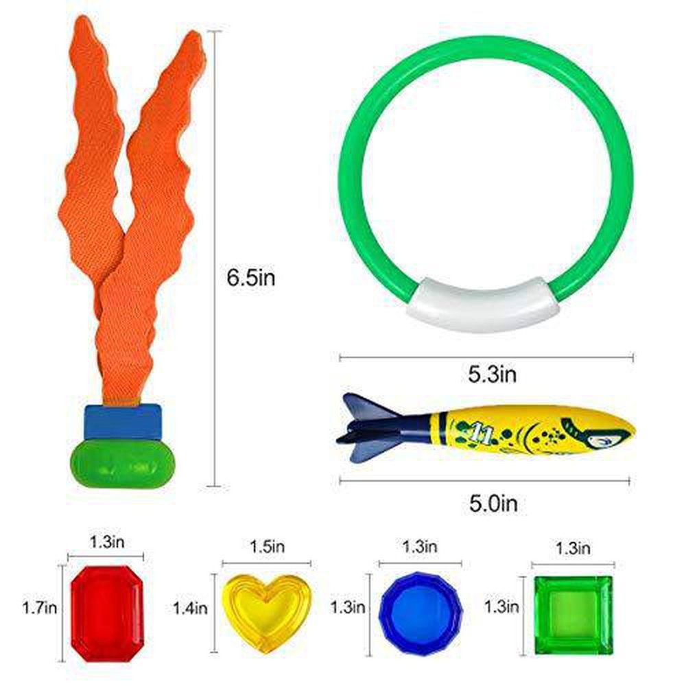 • [Premium Quality Water Toys]: Made of high quality material, non-toxic, meet US toy standard, ASTM safety test approved. All pool dive toys are designed with a smooth surface, no any sharp edge, prevent children from being hurt while playing in the water.