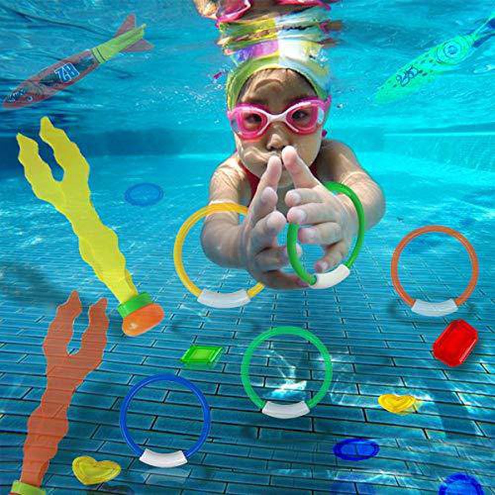 • [Diving & Swimming Training Pool Toys]: The swimming dive toys drop to the bottom at different rates, and all in bright color, encouraging kids to swim and dive underwater to catch them, excellent way to improve the swim and dive skill.