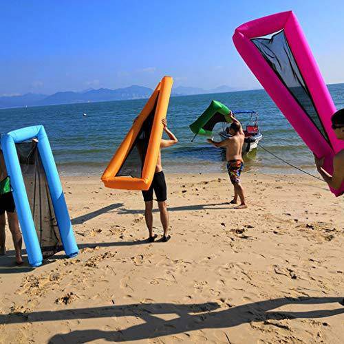 Details: specification: Product material: 100% pure nylon fabric texture soft feel light and inelastic. Operation features: open the pocket linear trotting a few steps to fully load 80% air and then roll up the seal, which can be quickly and conveniently after the buckle is buckled. Product weight: The total weight of the finished body and backpack carat is about 0.3 kg Step1: Layout the water hammock and allow some air to enter the air tubes Step2: Grasp the outer edge of each opening,make sure the opening are as big as possible to maximize the collection of air. Run forward 10-15feet,then quickly close the openings and immediate push the air gently towards the hammock center, if needed repeat this process until the hammock baffle is 80-90%full. Step3: Roll the two openings whic will compress the air inside the baffle. Do this for both ends until the air baffle is tight. Then clip both buckles which will prevent air leakage and retain compression Step4: Clip the buckle. The Water Lounger is set up. Package Including 1* floating row hammock