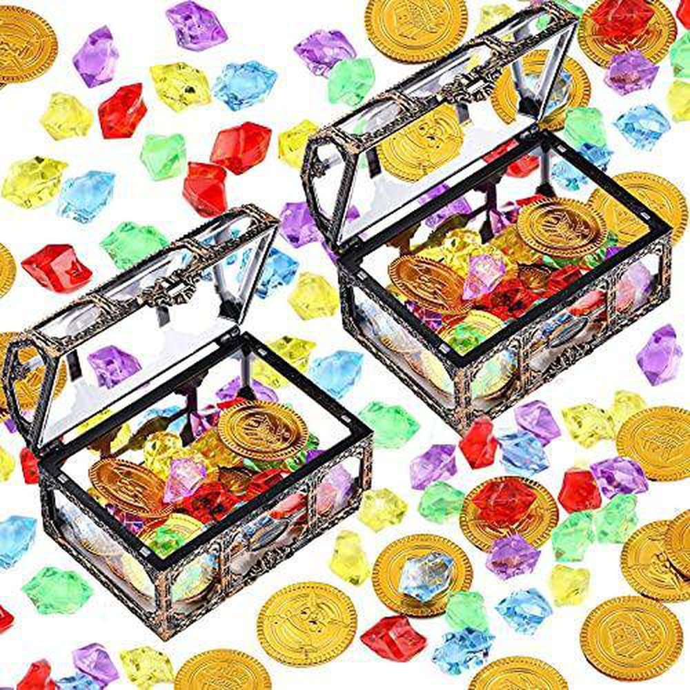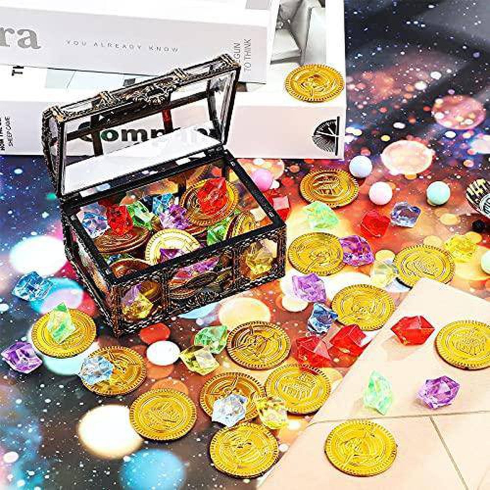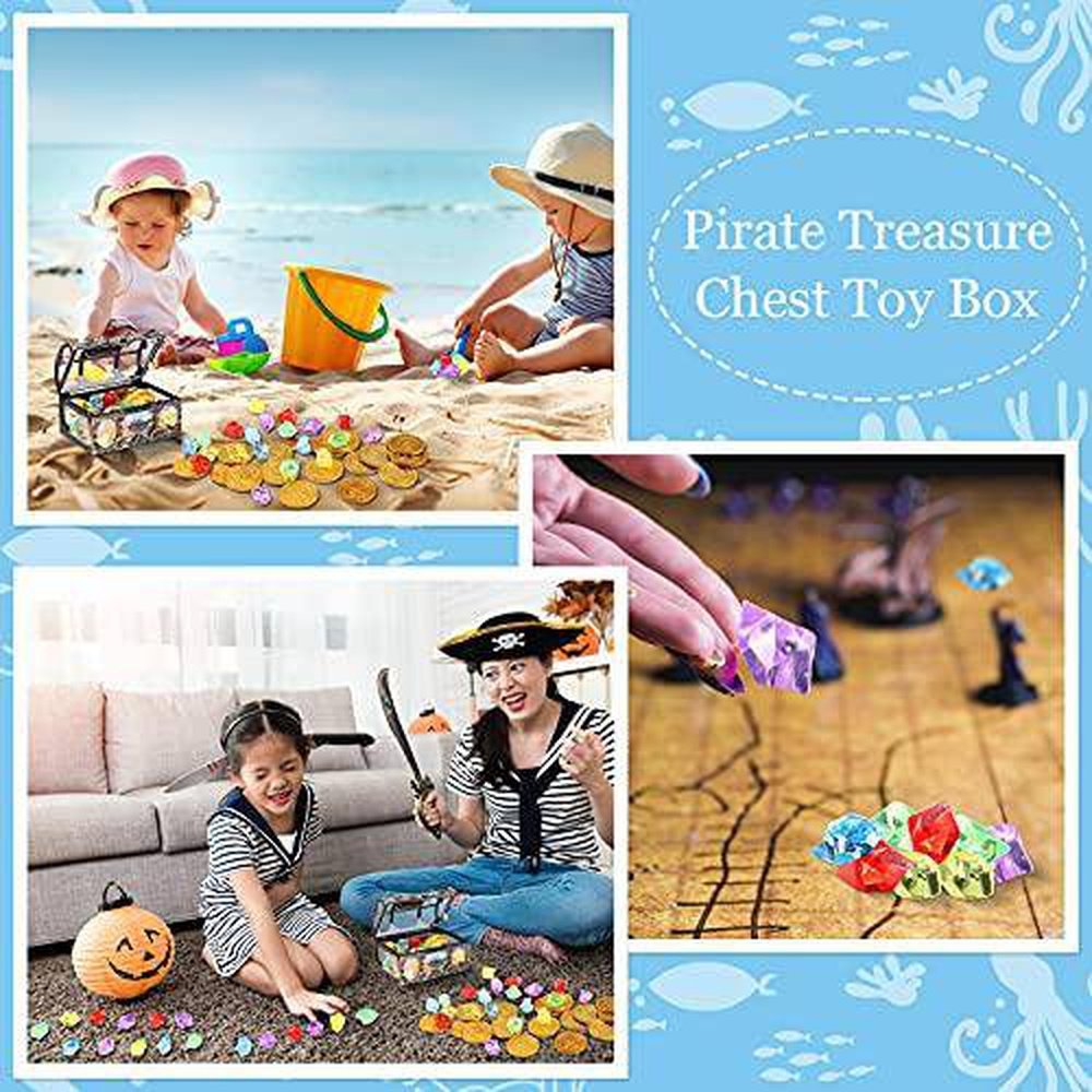 - Treasure hunt game: these treasure boxes, gold coins and colorful gems stones can meet the boys and girls' expectations for pirate role-playing and treasure hunt game; These realistic treasure box, gold coins and gems will be able to bring more fun for boys and girls during the game
