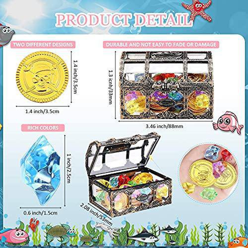 - Adequate quantity: for this diving gem pool toy you will receive 2 transparent sea jewelry boxes, each measuring approx. 4.13 x 3.14 x 2.55 inches/ 10.5 x 8 x 6.5 cm, 60 pirate gold coins, and 40 colorful gems