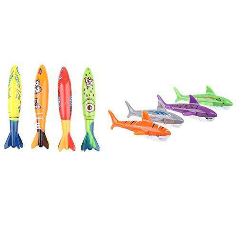 menolana 8Pcs Plastic Diving Stick Toys Set Swim Toy Kids Summer Gift - Shark Torpedo
