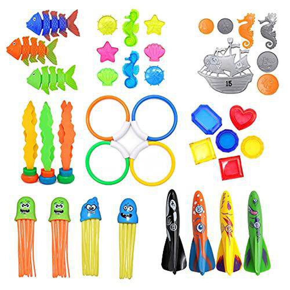 • High material.Our pool diving toys are made of safe material, it's definitely safe for kids to use. Edge-smoothness Design ensures your kids won’t get hurt when gripping the toy.Our diving toys are all designed well. Different items have different functions and help you kids enjoy diving time. The pool toys are good gifts and fit for fun in the swimming pool.