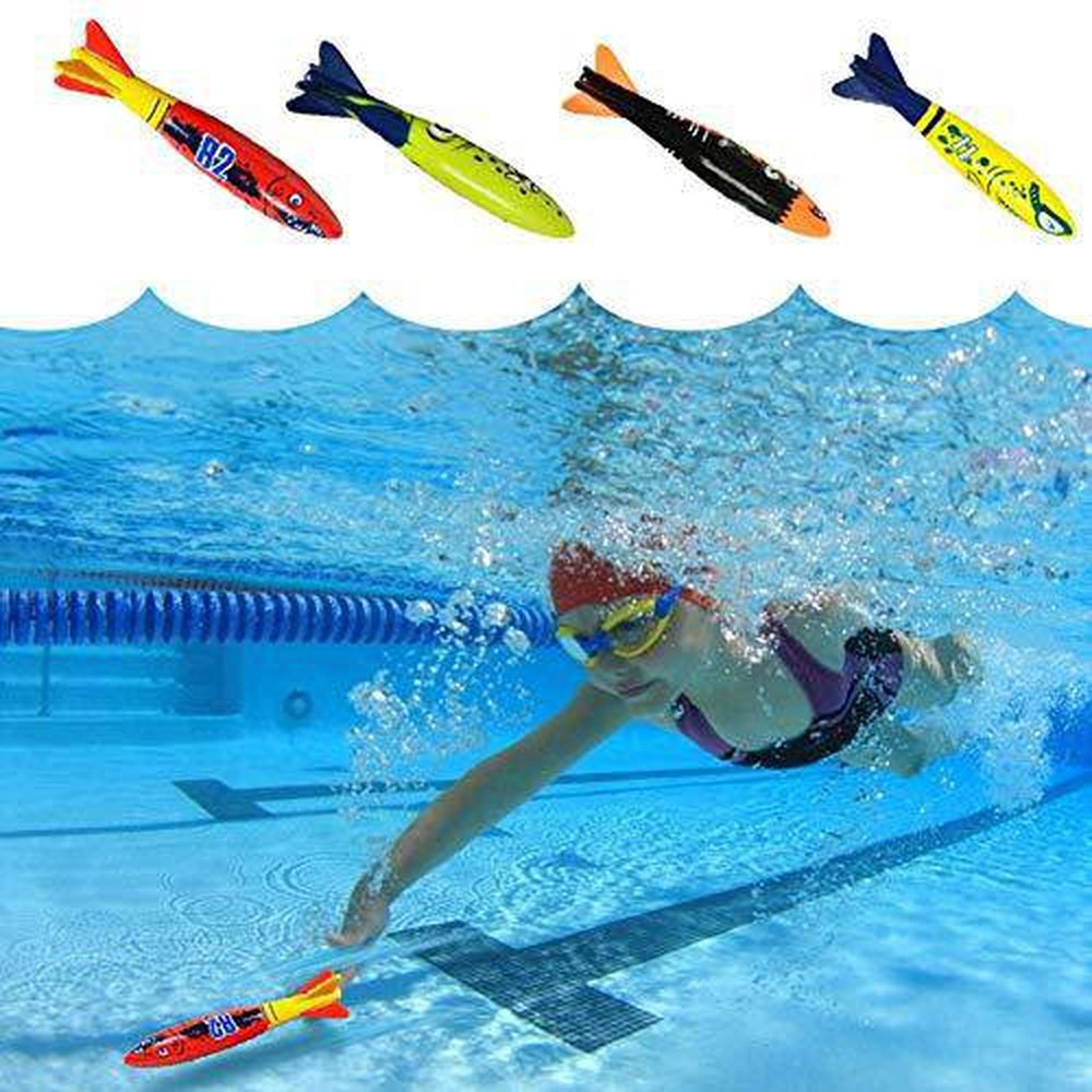 Naroote Children Swimming Toys, 4 Pcs Underwater Torpedo Rocket Throwing Swimming Diving Game Summer Toy