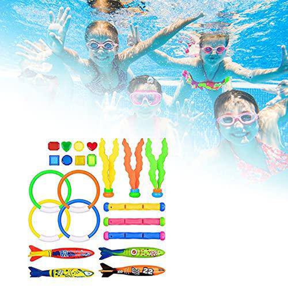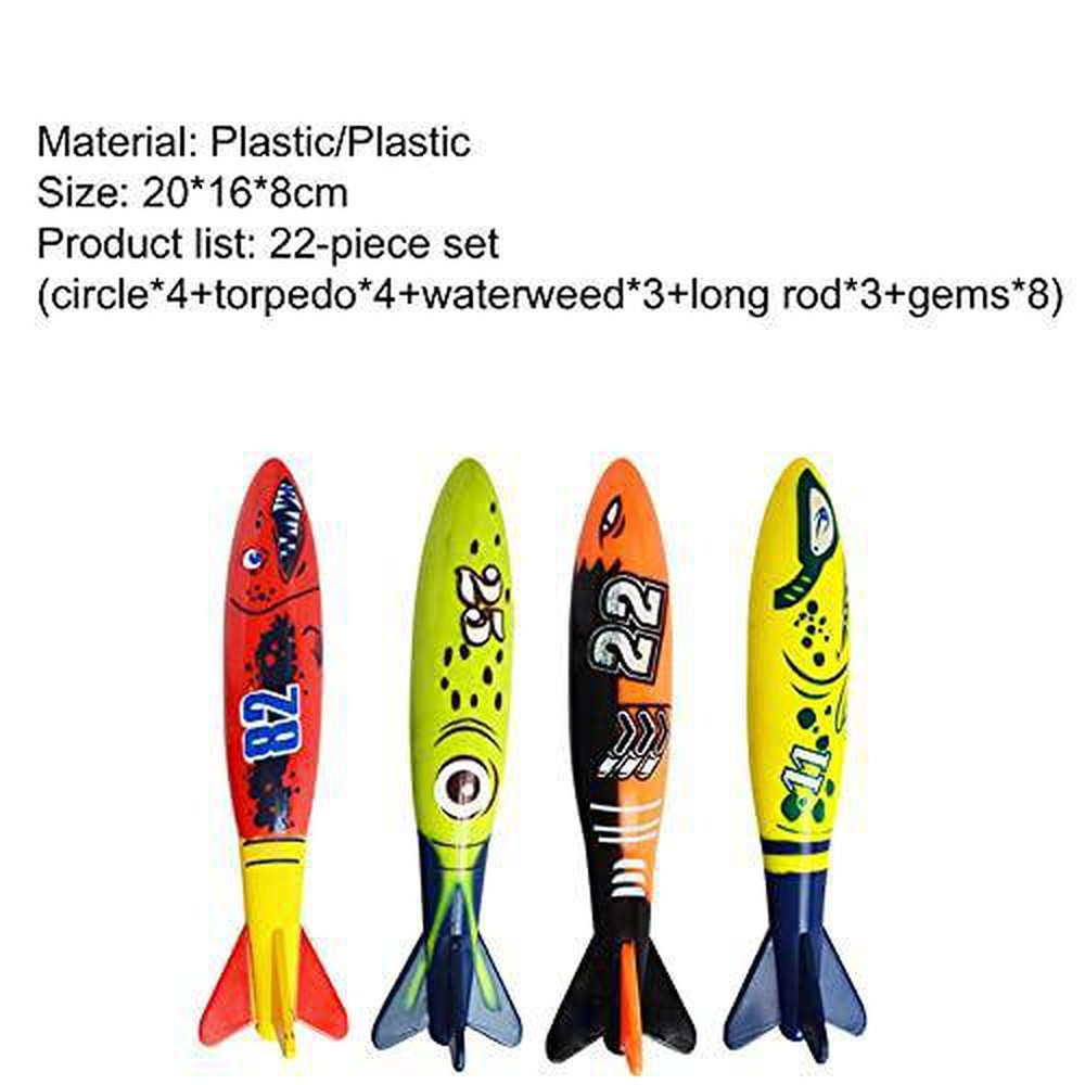 Pool Diving Toys, 22Pcs/Set Diving Toys Portable Wear-Resistant ABS Fish Ring Torpedos Swimming Toys Set for Beach 22Pcs/Set