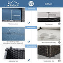 - Sturdy&Durable: Solid metal structure make it super safe to sit in the sofa set. Added bars for the frame enhance the sturdiness and allow the sofa to support heavy people about 300lbs. Adjustable feet make it steady on uneven surfaces. PE Wicker is strong enough to survive inclement weather and guarantee the set has a long service life.Note: cushions are not water-proof;(When you don' t use it, advise you to take cushions inside or buy a cover for longer service time)