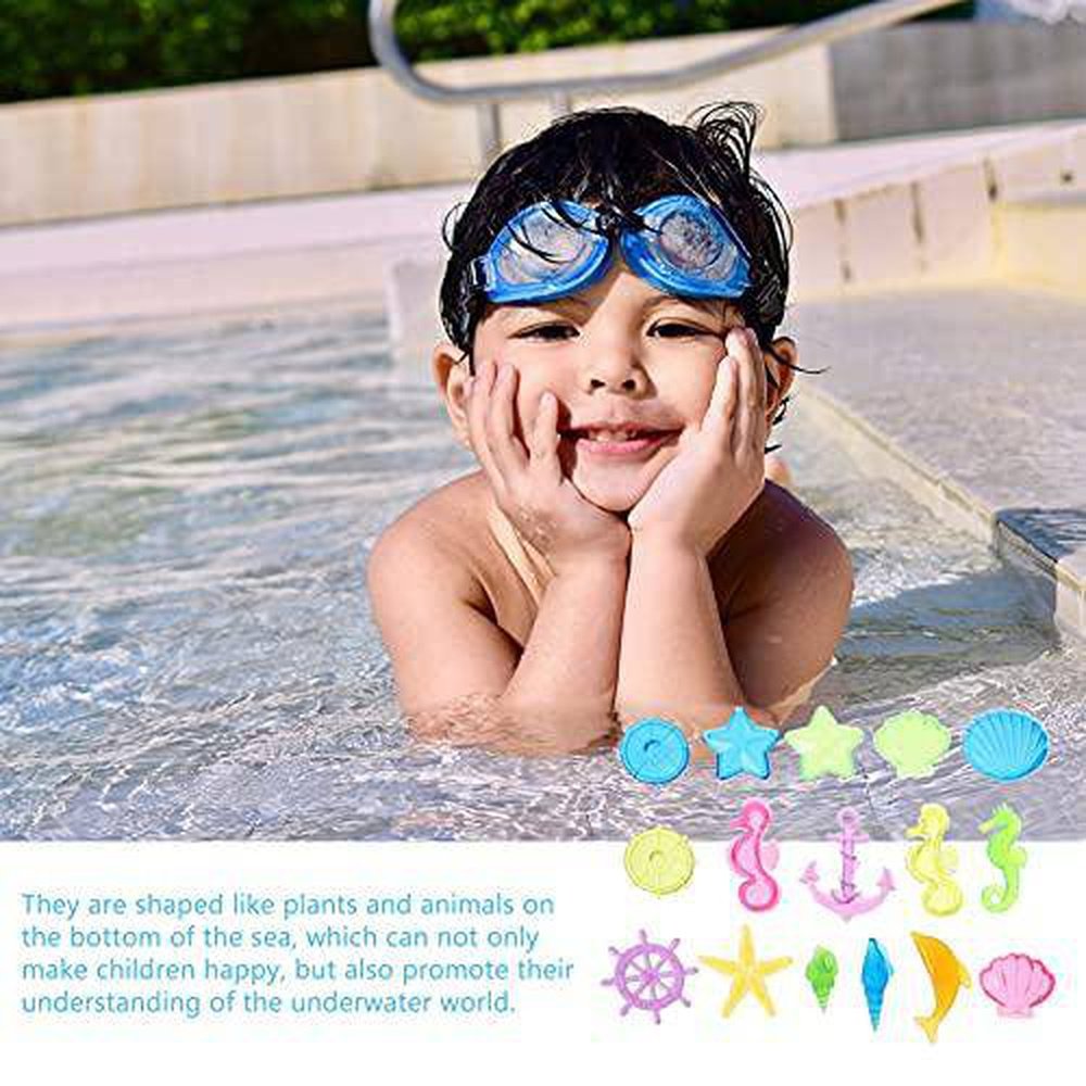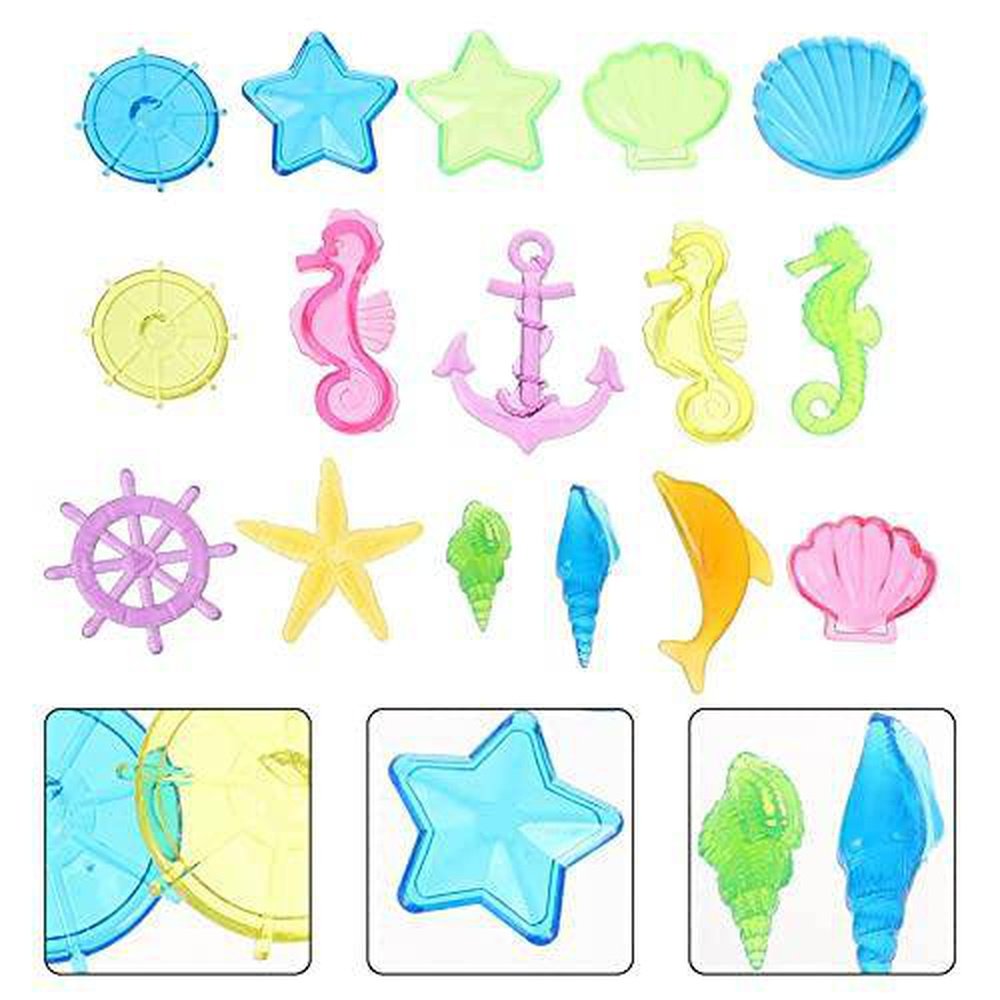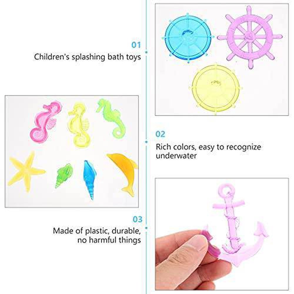 Toyvian 16Pcs Swimming Diving Pool Toys Baby Bath Toys Plastic Seashell Seahorse Seastar Water Playing Toys for Toddlers Kids Children